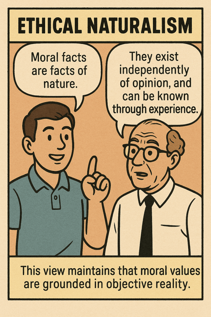 Ethical naturalism (or moral naturalism) is the realist view that moral facts are essentially natural facts – part of the natural world and accessible through empirical observation or science. In other words, moral properties like “good” or “evil” are reducible to or constituted by natural properties (such as pleasure or pain, human flourishing, preferences, biological needs, etc.). Moral truths can thus be studied and known in largely the same ways we discover scientific truths. For example, a naturalist might say “Goodness is just whatever promotes human well-being” – defining the moral in terms of a natural quality (health, happiness, survival, etc.). If so, one could investigate empirically which actions increase well-being to determine what is morally right.